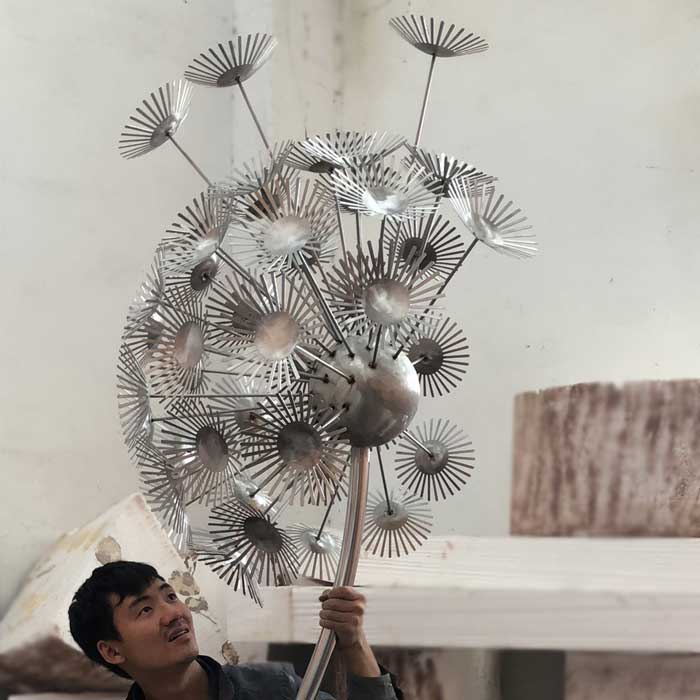 尺寸:高2.5米,蒲公英直径90公分材质:304不锈钢表面效果:拉丝亚光处理